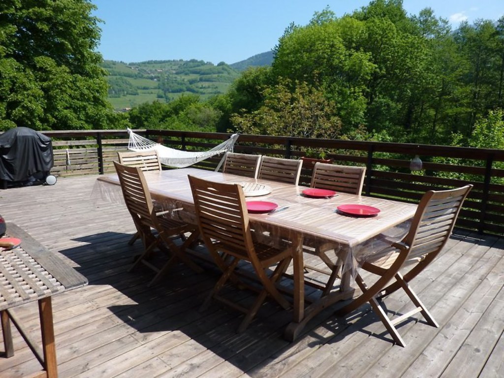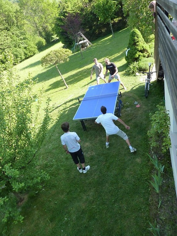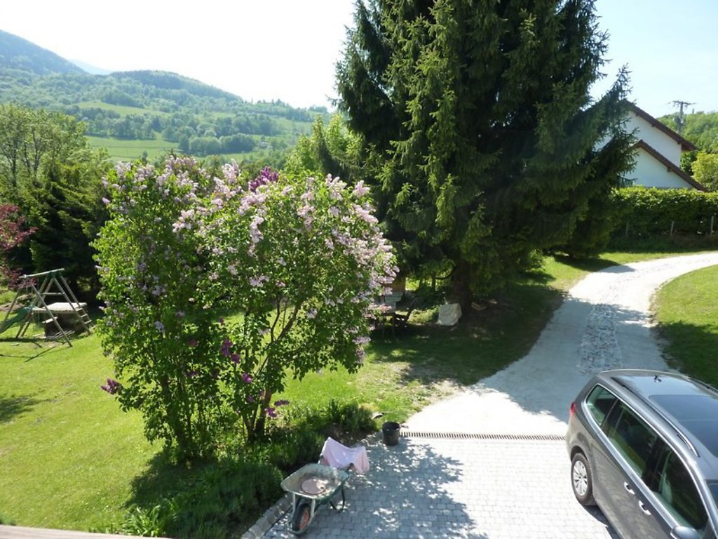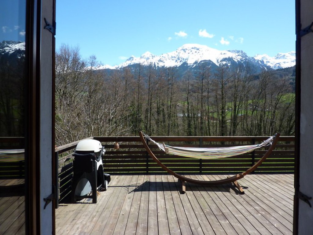 Our big garden (half an acre or 2300m2) opens out on two sides onto fields and forest, with a view across the forest to the Grand Colon mountain, part of the Belledonne mountain range. We’ve got plenty of toys and board games, bicycles that you can use, plus ping-pong table, large garden chalet which is a children’s play-house / sleeping area in the summer.